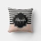 Chic Rosa och svart Wide Rand Namn och Monogram Kudde
