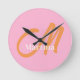 Chic Rosa Orange Monogram Rund Klocka