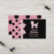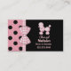 Gulligt mammanätverkandekort som göras i en svart bakgrund, på rätsidan och en rosa med svart polka dots, på vänster sida och baksidaen. Diagram av en rinnande lodrät för rosa- och vitginghamband mellan de två bakgrunderna dekoreras med en ginghampilbåge. En förtjusande fluffig tittar rosa pudel dekorerar den bästa rätsidan av kortet, med beställnings- rosa text under den. Personifiera detta roliga kort som ett stag för underbar långt i handlag med annan mammor för att ordna partyn, lekdata och att sitta barnvakt.