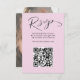 Denna moderna OSA kort sammanför elegans och bekvämlighet med ren, contemporary typografi på feminin rosa. Ett särskilt QR-kodavsnitt gör det möjligt för gästerna att snabbt få tillgång till din bröllop webbplats eller OSA, vilket förenklar processaa för svar. Den omvända sidan ger dig en personlig beröring med utrymme för ditt foto och monogram, vilket ger en unik och minnesvärd detalj. Den här eleganta designen blandar minimalismen med sofistikering helt och hållet anpassade, och ser till att den kompletterar alla bröllop stil samtidigt som den hjälper dig att enkelt samla svar och stil.