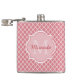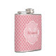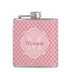 Tillsätt en sofistikerad modern vib till din personliga stil med trendigets rosa och vit quatrefoil mönster 6 oz kolv med elegant monogram. Anpassa snyggtens design genom att lägga till ditt namn och inledande monogrammet.