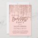 Chic Rosa ros Guld Glitter Fringe Bachelorette Inbjudningar