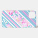 En chic Fodral-Mate fodral för att skydda din iPad, med en mönster av Turquise och White Deckcourt Rand och Rosa ros på turkos, utspridd med små vita fjärilar: en del av Posh & Painterly-samlingen "sommardagar".