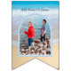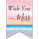 Chic Rosa och Lila Sunset Beach Wedding Bunting Flaggor med foto ramar och manus för dem som inte kan närvara vid bröllop. Den har en Photo Arch Ram-textmall för namn och en chic blå havsbakgrund