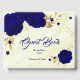Det vackra elegant royal blåa blommor med lite guld löv chic marmor gäst bok. Uppgifterna om glitter simuleras