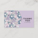 Det här chic, roliga affärskortet blandar elegans och natur med en fantastisk blommigt för lila. Perfekt för småföretagsägare, den har plats för din logotyp och ett uppriktigt "Tack"-meddelande på framsidan. På baksidan finns anpassade-avsnitt för en rabattkod, social-medialänkar och en begäran om granskning. Det här kortet är idealiskt för att ge dina beställningar en personlig beröring, men ger ett bestående intryck samtidigt som det främjar kundlojalitet. Dess strålande och mjuka lila leder till värme och stil till varje paket.