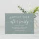 Chic Sage grönt inbjudan till bröllop efter party. "Lyckligtvis, allt efter Party" skrivs i en blandning av enkla vita bokstäver och ett modernt, vitt skript med dekorationer.