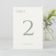 Chic och elegant. Dessa bordsnummer har en contemporary typsnitt i en attraktiv grönt, mot bakgrund av ett elfenben. Inkluderade är ett bordsnummer och ett par namn. Redigera varje kort individuellt med nummer och lägg till i kundvagn. Designad för samordning med andra objekt i samlingen. Samlingen Fullt bröllop kan visas här: https://www.zazzle.com/collections/modern_chic_script_wedding_collection-119480419775094242