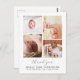 Det här stilrena och tidlösa fototack-kort är perfekt för alla som vill tacka sina gäster för presenter, kärlek och stöd på deras baby shower och presentera den nya familjemedlemmen. Den moderna och eleganta designen har en minimalistisk stil och innehåller fyra anpassningsbara foton i klistret, enkel elegant typografi för din information och ett stilrent skrivsätt för en "tack"-rubrik. På baksidan finns ett anpassningsbart tackmeddelande med era namn. Använd knappen "anpassa" för att ersätta foton och redigera text.