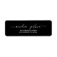 Chic, modern returadressetikett för bröllop med namn i elegant, vitt skript på svart bakgrund. Lägg bara till namn och adress.