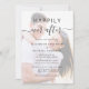 Modern bröllopsinbjudan med ditt foto överlagrade med din anpassade inbjudan och "Lyckligtvis någonsin efter" skriven i en blandning av enkel typografi och ett chic-skript med dekorationer.