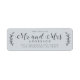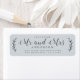 Chic, modern och enkel bröllop-returadressetikett med den framtida texten Mr. och Mrs. in off-black elegant script calligraphy on a pastel blue bakgrund with a snyggt touch of rustic foliage. Lägg bara till ditt namn och adress. Enbart designad för dig av Lycklig Dolphin Studio. Om du behöver hjälp eller matchande produkter kontaktar du oss genom vår chatta. Vi är lycklig för att hjälpa dig att göra bröllop till den vackraste dagen!