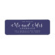 Chic, modern och enkel bröllop-returadressetikett med texten framtida manusjus och manusjus i vit elegant på marin blå bakgrund. Lägg bara till ditt namn och adress. Enbart designad för dig av Lycklig Dolphin Studio. Kontakta oss på happydolphinstudio@outlook.com om du behöver hjälp eller matchande produkter. Vi är lycklig för att hjälpa dig att göra bröllop till den vackraste dagen!