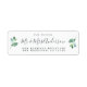 Chic, modern och enkel returadressetikett för bröllop med texten framtida Mr. och Mrs. in off-black elegant skript på en vit bakgrund och en snyggt touch of eucalyptus foliage. Lägg bara till ditt namn och adress. Enbart designad för dig av Lycklig Dolphin Studio. Kontakta oss på happydolphinstudio@outlook.com om du behöver hjälp eller matchande produkter. Vi är lycklig för att hjälpa dig att göra bröllop till den vackraste dagen!