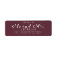 Chic, modernt och enkelt bröllop-returadressetikett med texten framtida manusjus och manusgrafi i vit elegant på burgundisk bakgrund. Lägg bara till ditt namn och adress. Enbart designad för dig av Lycklig Dolphin Studio. Kontakta oss på happydolphinstudio@outlook.com om du behöver hjälp eller matchande produkter. Vi är lycklig för att hjälpa dig att göra bröllop till den vackraste dagen!