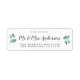 Chic, modern och enkel returadressetikett för bröllop med den framtida texten Mr. och Mrs. in off-black elegant script och en snyggt touch of grönt eucalyptus foliage. Lägg bara till ditt namn och adress. Enbart designad för dig av Lycklig Dolphin Studio. Kontakta oss på happydolphinstudio@outlook.com om du behöver hjälp eller matchande produkter. Vi är lycklig för att hjälpa dig att göra bröllop till den vackraste dagen!