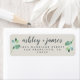 Chic, modern och enkel returadressetikett för bröllop med namn i handskrivet skript av off-black elegant-typ med snyggt av grönt foliage på lätt grått-bakgrund. Lägg bara till namn och adress. Enbart designad för dig av Lycklig Dolphin Studio. Kontakta oss på happydolphinstudio@outlook.com om du behöver hjälp eller matchande produkter. Vi är lycklig för att hjälpa dig att göra bröllop till den vackraste dagen!
