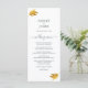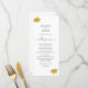 Elegant minimal meny bröllop med skript för svartvit chic och en snyggt av lövbladet från guld löv på vit bakgrund. Lägg bara till dina uppgifter om bröllop. Enbart designad för dig av Lycklig Dolphin Studio. Kontakta oss på happydolphinstudio@outlook.com om du behöver hjälp eller matchande produkter. Vi är lycklig för att hjälpa dig att göra bröllop till den vackraste dagen!
