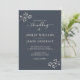 Chic Script Ivory Foliage Mörk blått Bröllop Inbjudningar