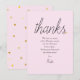 Chic script babyflicka tack dikt. Designad för att samordna med vår chic script guld hjärta babyflicka shower, sprinkle eller couples shower samling. Har chic script med ett guld kärlekshjärta på en rosa bakgrund. Baksidan har spridda guld kärlekshjärtan på en matchande bakgrund. Ett perfekt sätt att säga tack!