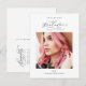 Den här söt svartvitt och vita enfoto-studentfesten med vykort har ett vackert skript, framfoto och party-detaljer med returadress på baksidan.