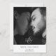 Minimalistisk och chic. Det här fina bröllop spara datum-kortet har ett foto (helst svart och vitt) med en contemporary typsnitt i svart. En vit rektangel vid grund sitter ovanpå fotot. Kortets baksida innehåller valfri text och webbplats adress. Lämna den här textrutan tom om ingen text är att föredra. Samlingen Fullt bröllop kan visas här: https://www.zazzle.com/collections/modern_chic_script_wedding_collection-119480419775094242