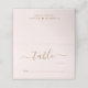 Chic light pink wedding table number place cards featuring "table" in a stylish gold script with swashes and blank lines for you to fill in the table numbers and guests' names. On the back, add your first names joined by a heart and your reception date in simple gold lettering.