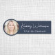 Make a polished first impression with this modern blue personalized name tag, featuring an elegant signature-style white script paired with a clean professional layout. Designed to feel both approachable and refined, this name badge is ideal for business owners, employees, conferences, networking events, and customer-facing roles. The stylish script highlights your name, while the secondary line allows you to add a job title or company name for clarity and professionalism. The photo adds a friendly, recognizable touch -- perfect for offices, trade shows, salons, retail environments, and corporate events.