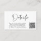Elegant bröllopsdetaljer bifogad kort med "Detaljer" i ett stilfullt samtida skript. Ange adressen till din bröllopswebbplats för att skapa en QR-kod som dina gäster kan skanna för alla dina detaljer såsom vägbeskrivning och boende samt för att svara online. Baksidan visar ditt foto överlagt med dina förnamn och bröllopsdatum sammanfogade med ett hjärta.