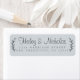 Chic, enkel och modern returadressetikett för bröllop har namn i handskrivet skript i off-black elegant, kalligrafi och typografi på en pastellblå bakgrund med en snyggt av rustik lövning. Lägg bara till namn och adress på det osa klistermärket. Enbart designad för dig av Lycklig Dolphin Studio. Kontakta oss på happydolphinstudio@outlook.com om du behöver hjälp eller matchande produkter. Vi är lycklig för att hjälpa dig att göra bröllop till den vackraste dagen!