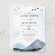 Chic Script Slate Blue Mountains Forest Bröllop Inbjudningar