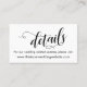 Behålla dina gäster i bröllop på slingan med alla dina detaljer med dessa djupgående bröllopsförmåner infogas. Dessa söt-kort återspeglar en elegant, avslappnad stil. Chicens textövertäckningar var designade med ett modernt skriptteckensnitt i svart. Den ena sidan lyder "spara datumet" och den andra säger bara "detaljer". Använda mallen fält om du vill anpassa dessa visitkort med dina personuppgifter. Om du skriver ut med "affärskort-teknik" blir det enkelt att få behålla på storleka. Skicka dem med dina traditionella utskick och behålla några till med dem som behöver ett extra eller två! Bakgrunden är vit och det redigerbara färg kan ändras till valfritt alternativ från bröllop-paletten. All redigerbar text visas i svart. designad av Melody Watson för Pappra Muserie.