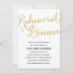 Den här elegantens repetitionsmiddag i inbjudan har en underbar kalligrafi och glatt faux-guld-folie.