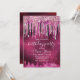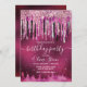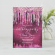 Chic shock rosa svart födelsedagsfest inbjudan för alla åldrar med glitter-droppning i coola och rhinestones-droppdesign. För att göra det speciellt i extra kommer ni att anpassa det med er egen information med vackert monogram typsnitt. OBSERVERA: Det här är platt tryckt grafik - ingen riktig glitter, juveler eller upphöjda delar.