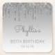 Chic Silver Glitter Drip 80:e Födelsedagsfesten Underlägg Papper Kvadrat