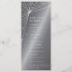 Ett elegant diamantspindelnät och stjärnor mot en silvergrå bakgrund. Utrymme för fyra rader plus extra detaljer längst ner. All text är helt redigerbar, så att du enkelt kan lägga till eller ta bort text och ändra typsnitt/storlek/färg/layout för att passa dina behov. Baksidan är mestadels tom, så mer text kan läggas till där om du önskar. Denna design finns tillgänglig i andra färger, på olika storlekar kartong samt på matchande inbjudningar och tillbehör.