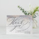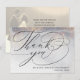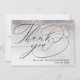 Skicka detta eleganta tackkort till dina bröllpsgäster för att tacka dem för att de deltog i din fest. Denna stilrena design har en abstrakt silver- och grå vattenfärg med guldgnist och orden "Tack" i elegant typsnitt tillsammans med ditt namn för att personifiera framsidan. Baksidan av kortet har ett anpassat foto (sepiafilter appliceras) som du kan ändra till ditt eget och ett meddelande tillsammans med din signatur. Designad av Susan Coffey.