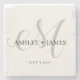 Chic, modern silver monogrammad sten underlägg med namn och år i svart elegant med skript kalligrafi och klassisk typografi med silver M monogram på vit bakgrund. Lägg bara till namn, monogram och år under. Snyggtens utformning och perfektens lyxgåva till det nylånade paret. Kontakta mig för andra monogram genom butikens chatta! Vi är lycklig för att hjälpa dig att göra bröllop till den vackraste dagen! Enbart designad för dig av Lycklig Dolphin Studio.