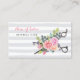 Hänvisa kunderna till ditt personliga märke av chic med dessa affärskort för snyggt blommigt och rand väns hänskjutning med ett par hårsaxar av silver som är inneslutna i en bukett av feminin rosa och persikofärgad ro mot ett mjukt grått och vitt vågrät målat rand. Anpassa genom att lägga till namn i professionellens hårstylist eller hårfrisör. Platt tryckt bild, INTE metallisk.