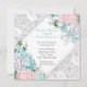 Söt snöre ser kvadratisk ut inbjudningskort för möhippan, med grafik av rosa, blått, vitt pastellvattenområde och baby andfågel, mot en vit lacy glatt se bakgrunden. Bilder av en vit satinbugg avslutar av den här elegantens uppmaning för att få den brud som ska användas. Anpassa texten för möhippan.