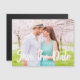 Spara det nya datumet skrivet i chic med fetstil, vit typografi på det här vackra förlovningens fotomagnetiska kort. Lägg till ett eget foto med utfallsfoto från fullt på det här moderna minimalistiska Spara datum magneter och anpassa detaljerna om bröllop på fotografiet.