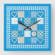 En mycket chic Square Wall Clock, med ett Faux Patchwork mönster av hjärtan och cirklar Daisy Chains (Kedjor) blandat med ditzy Daisy mönster, Polka dots och Check Gingham, från Posh & Painterly Daisy chain-samlingen.