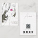 Denna smyckeskort har en minimalistisk teckning av en flicka med långt, brunt hår och rosa läppar, utformad i minimalistisk stil för en ren och elegant look. Den har punkter för att visa örhängen på hennes öron och dekorativ typografi. Kortet kan anpassas med ditt namn, webbplats, slogan och ikoner för sociala medier, plus en QR-kod för enkel digital åtkomst.