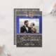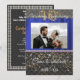 En chic svart och guld inbjudan med blå sidenduk introducerar fotografiet av paret.