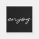 En enkel, minimalistisk svart bakgrund och vit skripttext "njut" av papper napkin. Idealisk party-dekanter för födelsedagar, babydusch, bröllop, möhippor, sweet sixteen etc.