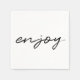 En enkel, minimalistisk vit bakgrund och svart skripttext "njut" av papper napkin. Idealisk party-dekanter för födelsedagar, babydusch, bröllop, möhippor, sweet sixteen etc.