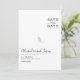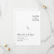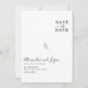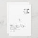 En minimalistisk svartvit design med ett sofistikerat namnteckning skript som accentueras med en botanisk krans. Ett standout Save the Date bröllop-meddelande med QR-kodens förmåga som passar bra ihop med de flesta moderna bröllop-platser.
