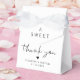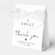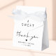 Chic presentlåda för ditt bröllop med texten "Ett sött tack" i enkel typografi och ett modernt skrivsätt, samt era namn och bröllopsdatum.