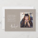 Det här meddelandet från studenten innehåller en snyggt neutralt-taupbakgrund med ett stort foto och ett mindre foto. Här kan nämnas student grad, major, namn i skolan och studieåret med student namn, som markerats med ett handskrivet typsnitt "namnteckning" stil. I baksidan finns ytterligare ett foto och ett ställe för ett längre meddelande, perfekt för att ha tagit med en tacksamhetsförklaring eller en framhävande av student resultat och framtida planer.