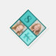Chic 2 photo square birthday party napkin for a trendy girl's birthday. Celebrate your child's birthday with two beautiful photographs of them on this add your own photograph decor with turquoise squares. Add their name and age under Happy Birthday.